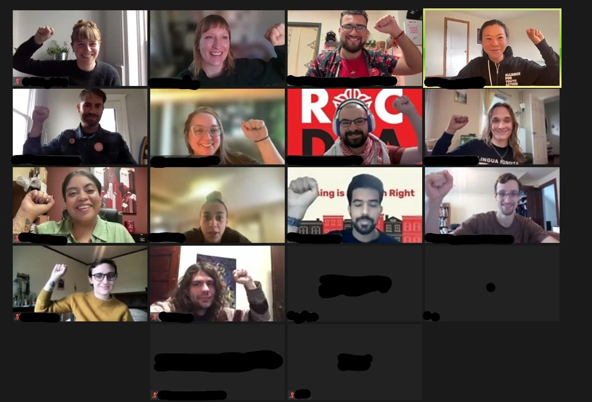 Colleen and other DSA comrades participating in a statewide solidarity dues phonebank.