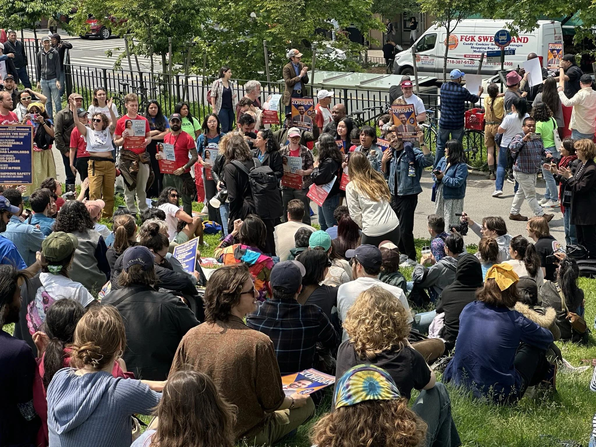 Volunteers at a Zohran rally